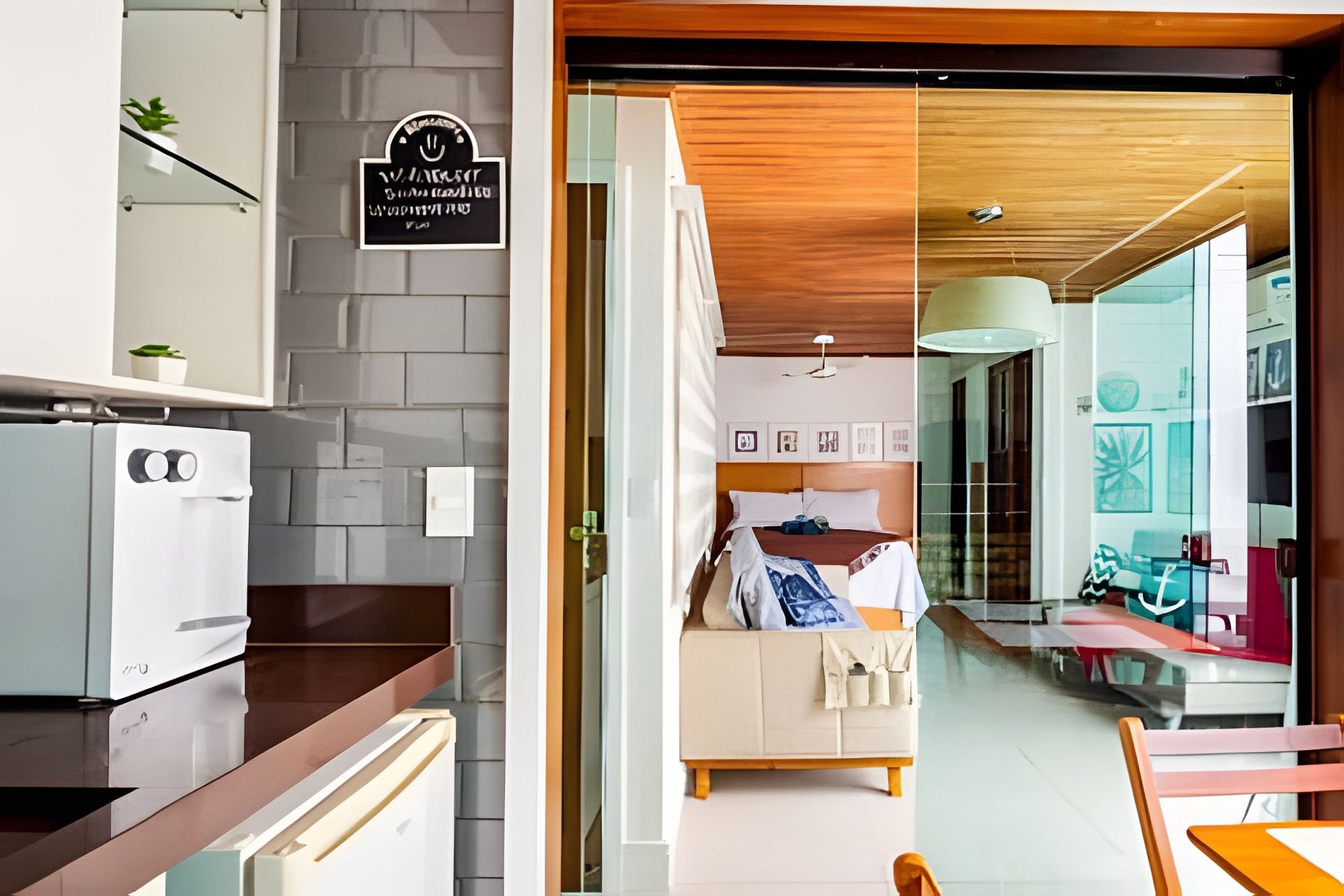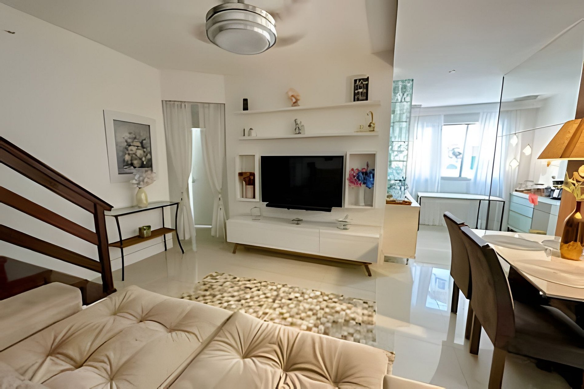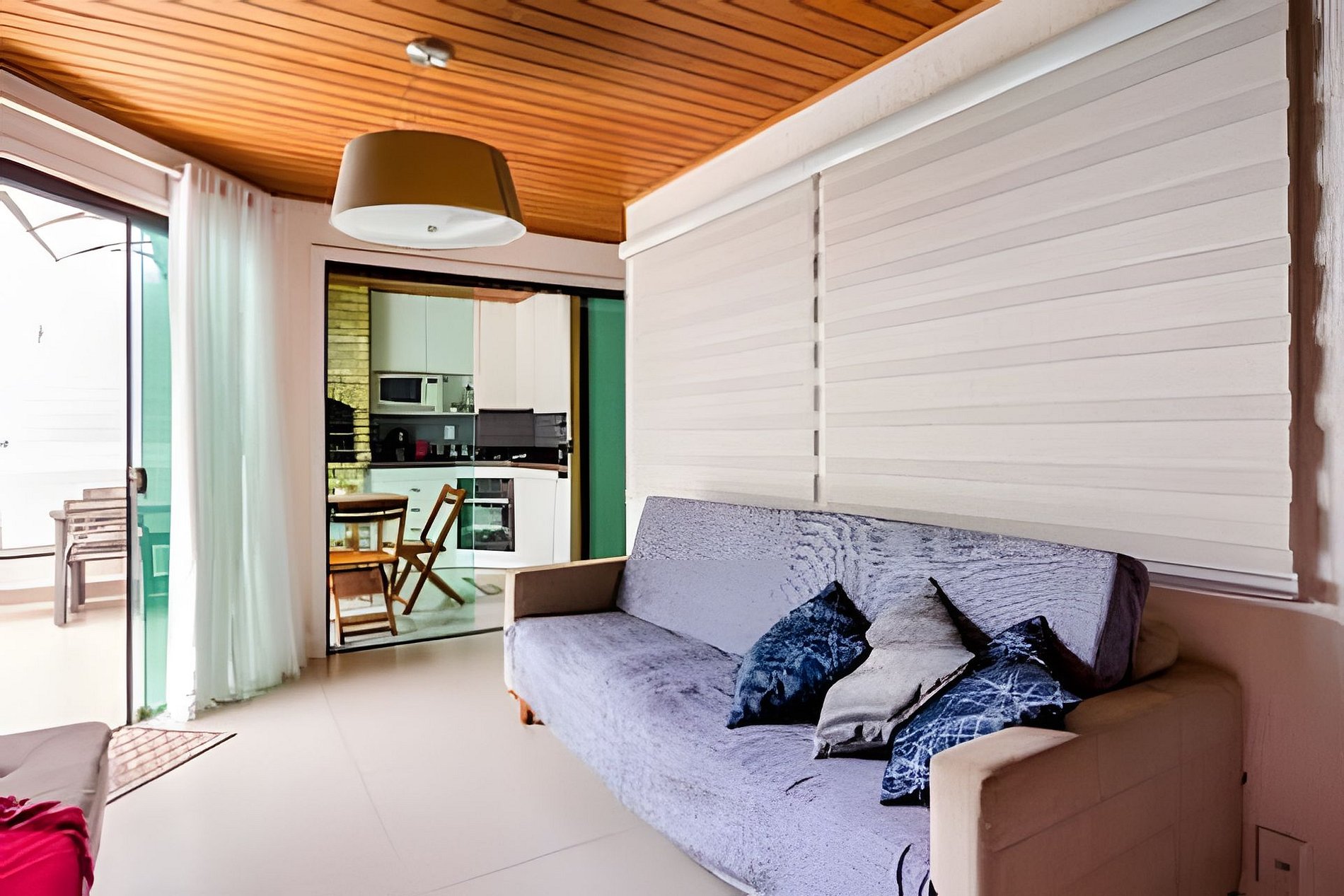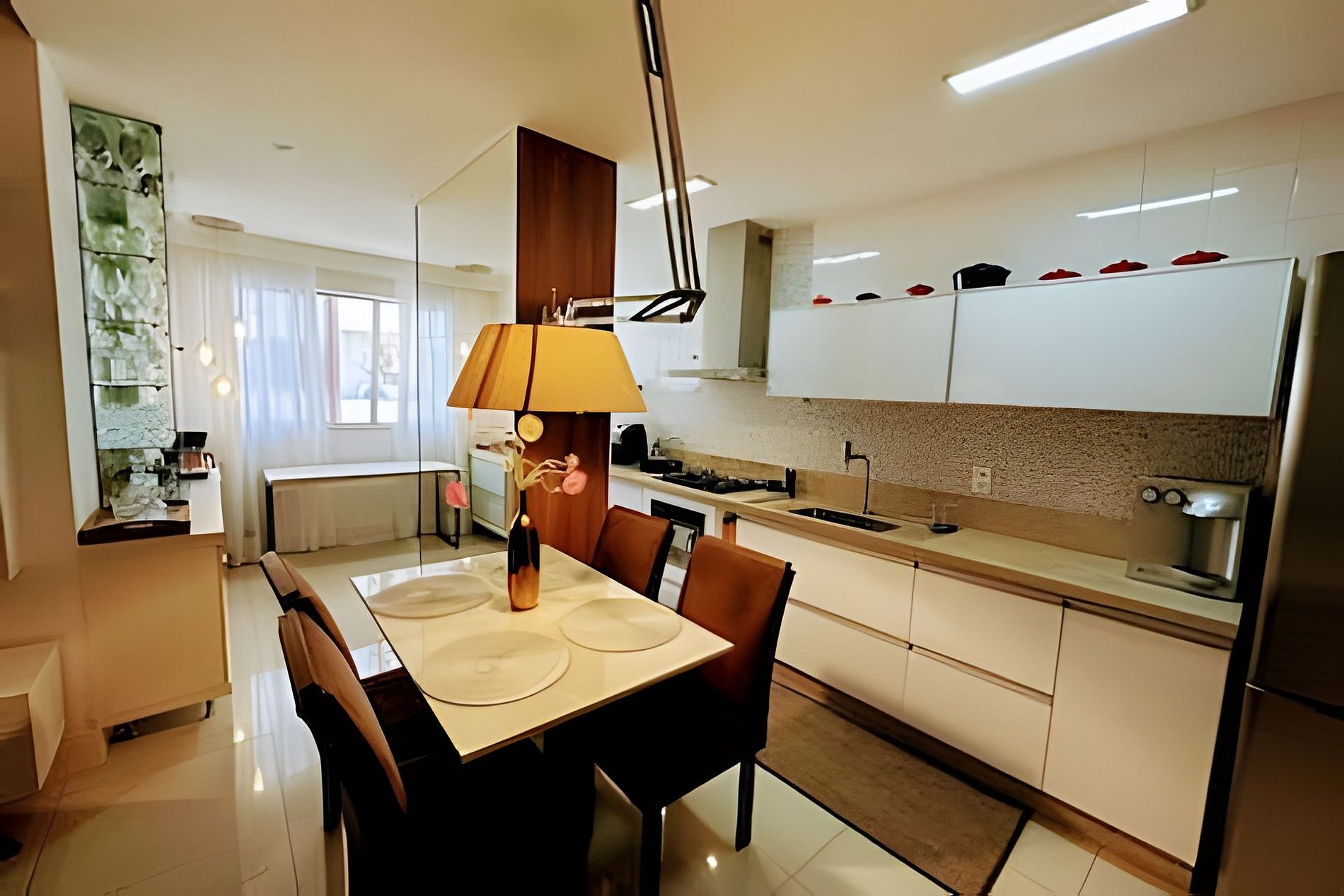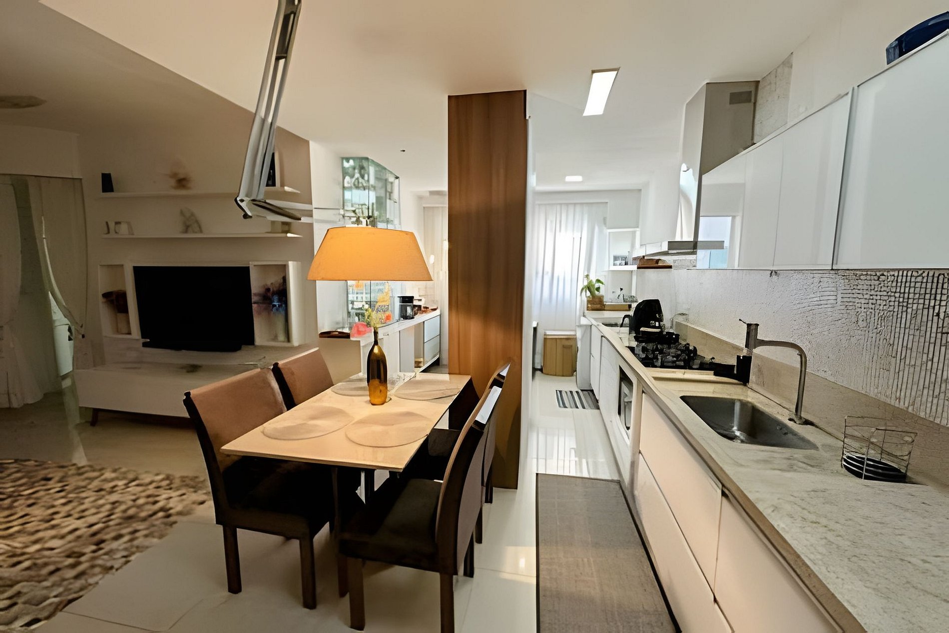 Sala integrada à cozinha e área de jantar
