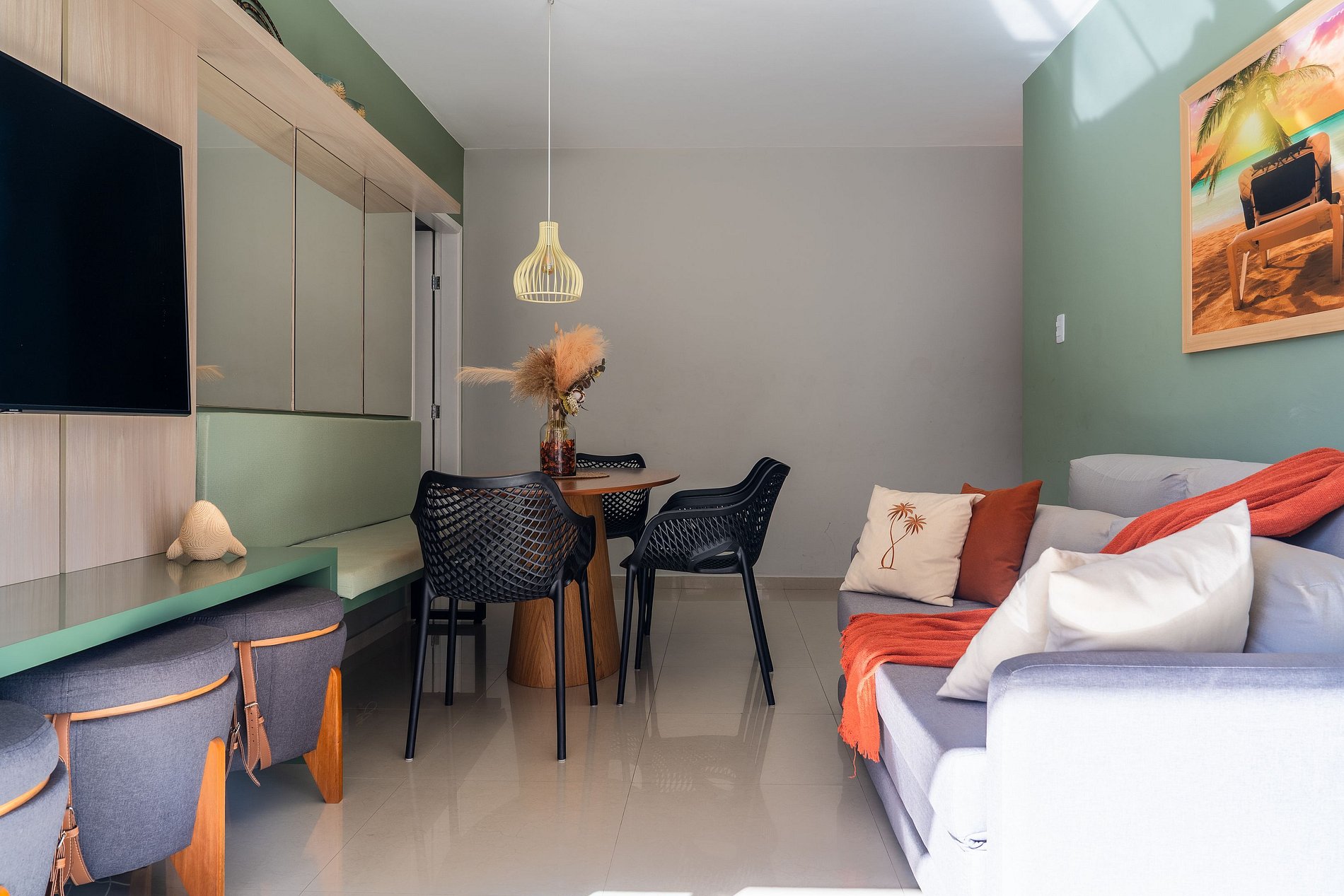 Bem-vindo ao nosso refúgio praiano no estilo de decoração boho, a apenas 200 metros da famosa Praia do Forte, no elegante e nobre bairro da Passagem, em Cabo Frio. Este apartamento foi minuciosamente reformado com o objetivo de proporcionar uma experiência única de hospedagem, com cada detalhe cuidadosamente planejado por um arquiteto especializado. O espaço oferece três quartos bem equipados: uma suíte e um quarto com cama queen cada, além de um quarto de solteiro com bicama (sendo a cama de cima ideal para um adulto e a cama auxiliar indicada para uma criança ou pessoa de menor porte). Todos os quartos contam com ar-condicionado. A decoração boho chic cria uma atmosfera acolhedora e sofisticada. Para sua comodidade, o apartamento possui uma varanda encantadora, Wi-Fi de alta velocidade e uma cozinha completa com airfryer, micro-ondas e cafeteira elétrica. Com quatro anos de experiência em hospedagem de excelência, estamos comprometidos em garantir uma estadia memorável. Aqui, você encontra conforto, estilo e a praticidade de estar a poucos passos de uma das praias mais belas do Brasil. Venha relaxar e desfrutar deste oásis de tranquilidade e requinte!